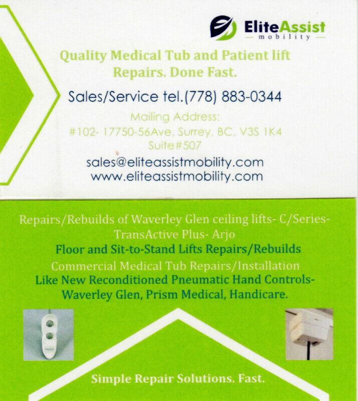 We repair Ceiling lifts, Floor sit-to-stand lifts, Medical Tub repairs, bathing lifts, Invacare Oxygen Concentrators and more. You may be surprised that repairing your old equipment could mean the difference of saving thousands of dollars in place of replacing with new equipment. That’s why you should work with someone you can trust to repair your individual components or even rebuild at much reduced costs. Our repair service prices are highly competitive and you can rest assured that you’re saving the most money by repairing instead of replacing it.
